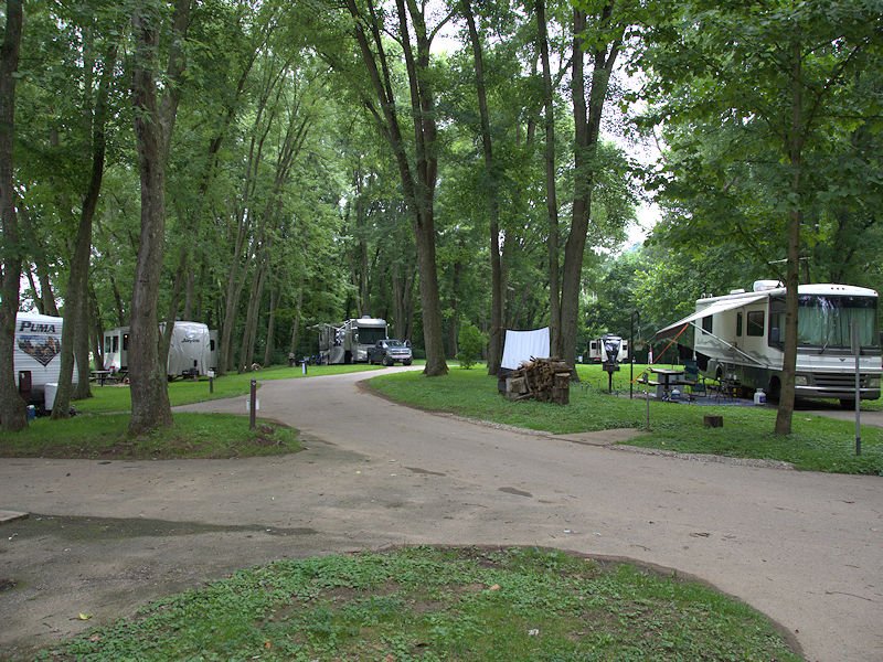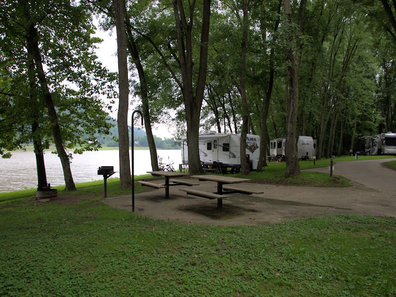 This campground, sitting on the North bank of the Ohio River in Ohio, accepts large RVs and tent campers. Some campsites have an exellent view of this recreational and working river.